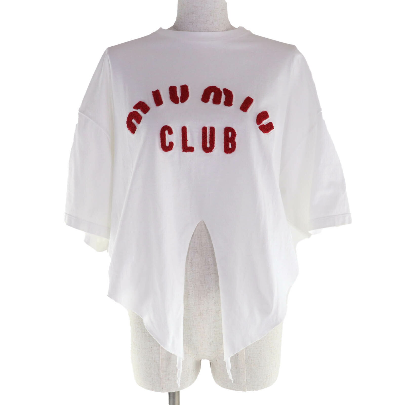 極美品☆MIUMIU ミュウミュウ MJL604 コットン ロゴテープ クロップド ZIP UP ジャケット ブラック S イタリア製 正規品 レディース【中古】