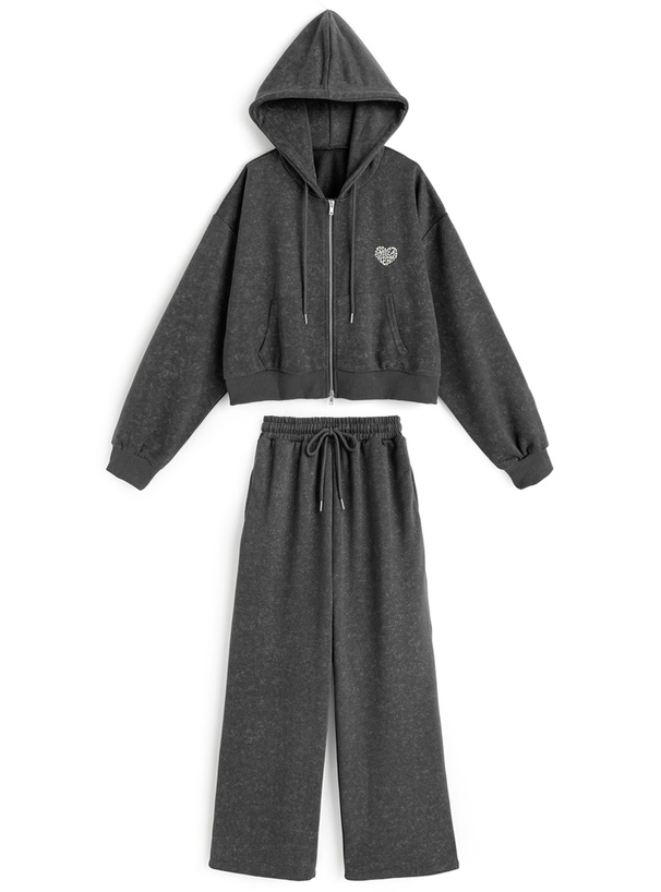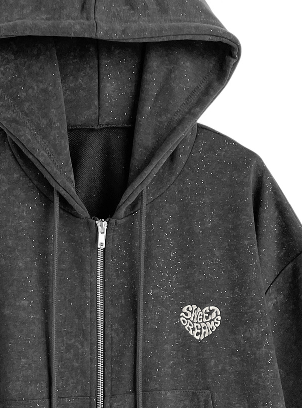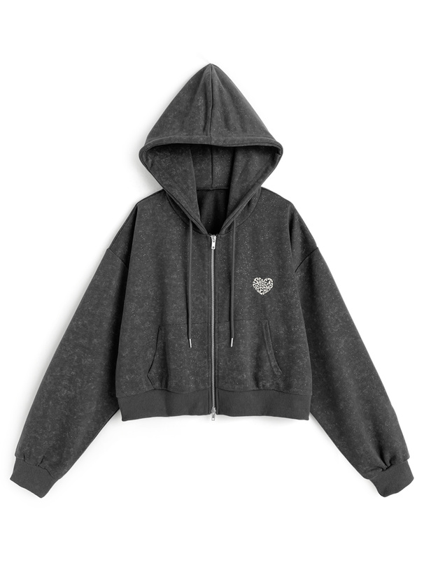 パーカーの胸元にあしらったハート型のロゴ刺繍がワンポイント。