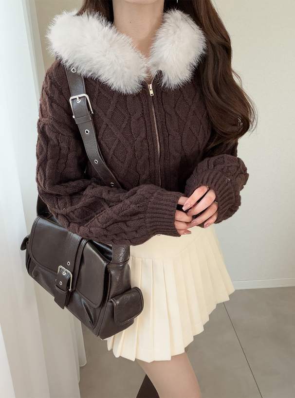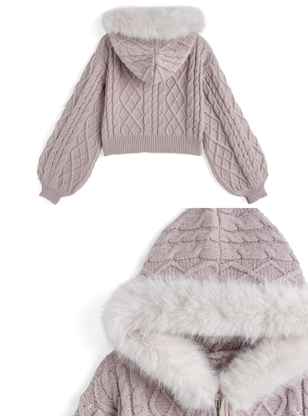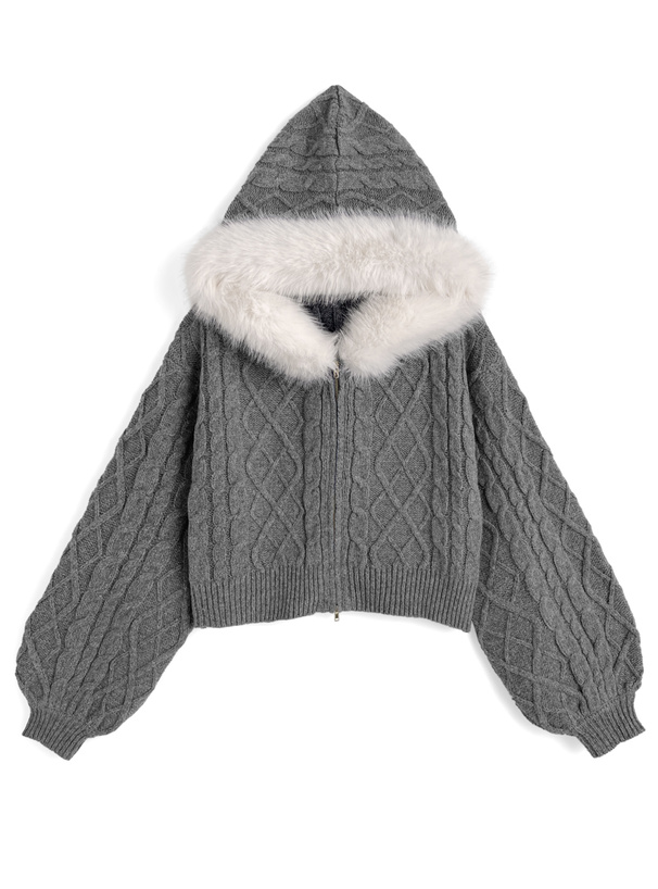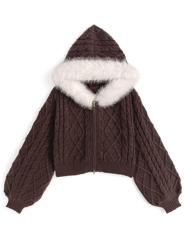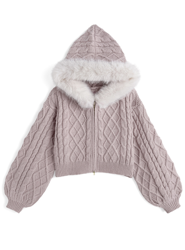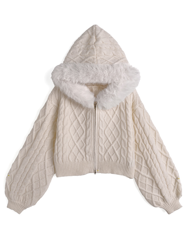 あたたかみのある立体的なケーブル編みデザインのニットパーカー。