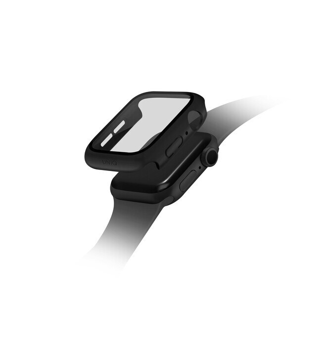 スクリーンを保護する硬度9Hの強化ガラスと、スリムなポリカーボネート製バンパーを組み合わせたApple Watch用ハイブリッドプロテクトケース。ケース裏側のガラスのフチを囲むシリコンのパッキンにより、スクリーンとガラスの隙間に水が侵入することを可能な限り防ぎます。また、防塵性にも優れており、防塵・防水のいずれでも規格上では最高レベルのIP68等級のスペックを備えております。