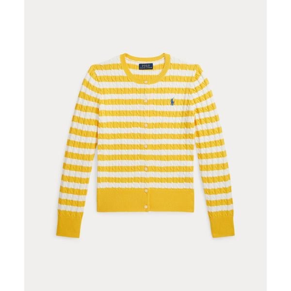 中厚手のコームドコットンを使用し、鮮やかなストライプとミニケーブルパターンをあしらったカーディガン。オールシーズン活躍するキュートな重ね着アイテム。・左胸にシグネチャーのポニー刺繍・クルーネック・ボタン付き前立て / 特別に開発したRalph Laurenのロゴ入りボタン / 下前立てに沿ってあしらったグログラントリム・長袖、リブニットのカフス・リブニットの裾※商品の色味は、光のあたり具合など諸条件により色感が多少異なって見える場合がございますので予めご了承下さい。※注意:柄の配置は、商品によって異なります。 【素材】・本体:綿 100% 装飾部分を除く【生産国】バングラデシュ