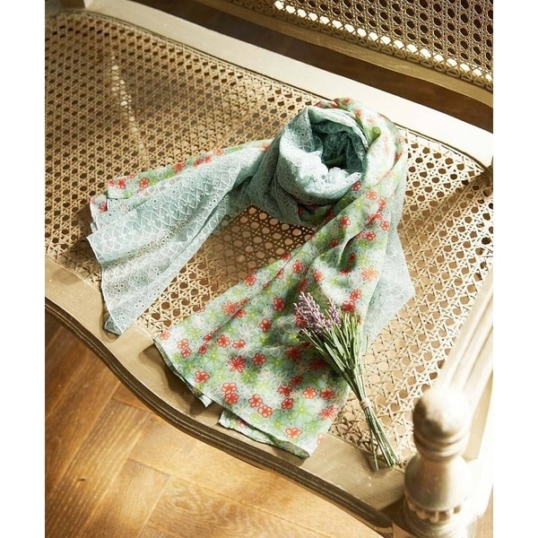 ぱっと華やかに印象付けるお花柄のストール。柔らかく落ち感のあるレーヨン素材に、繊細なチュールレースをドッキングしました。軽やかで抜け感のある組み合わせがナチュラルな雰囲気を演出。ショール使いも可能なサイズ感で、様々な巻き方を楽しめるのも嬉しいポイント。春夏らしいソフトなデザインで顔周りを明るく見せてくれます。