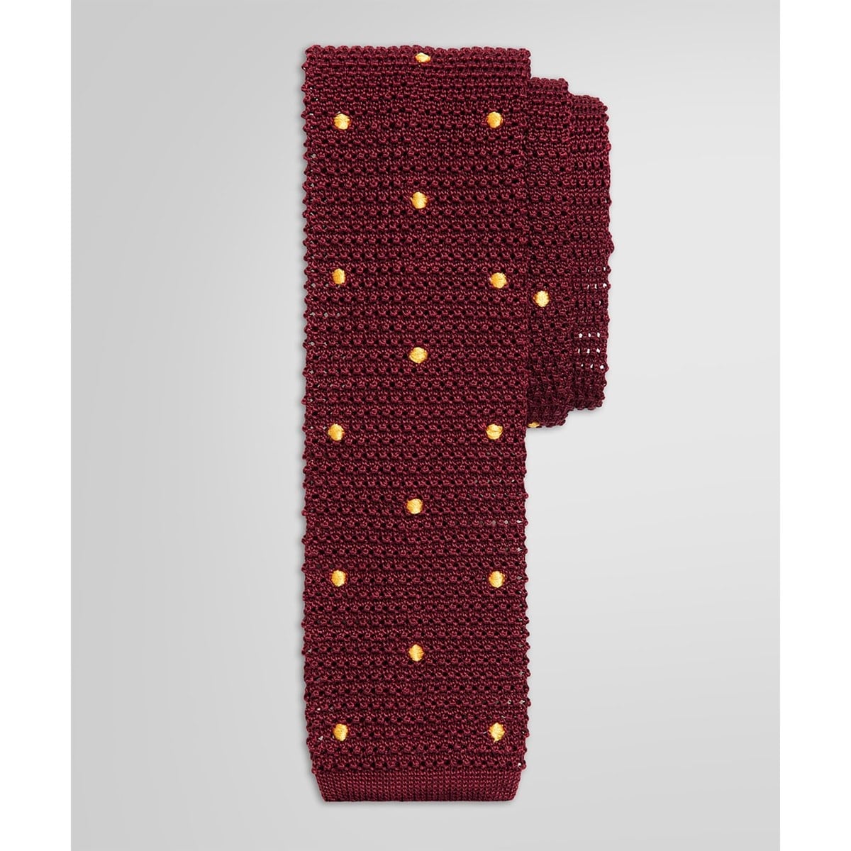 シンプルなドットのニットタイの小剣にはトーナルカラーでGF(ゴールデン フリース)マークを刺繍しました。ジャケットスタイルやカジュアルなコーディネートにお薦めです。