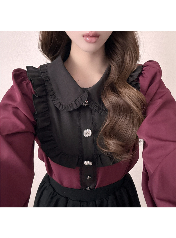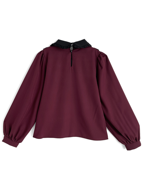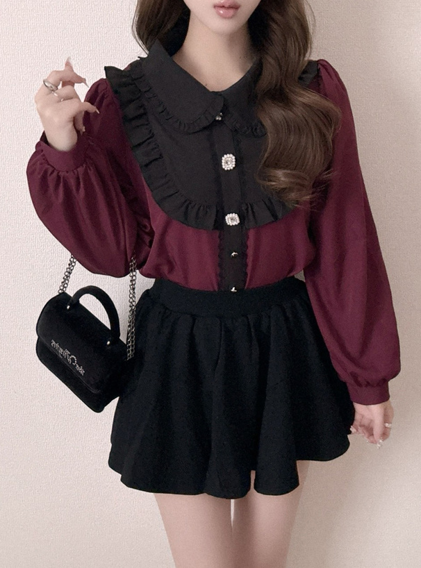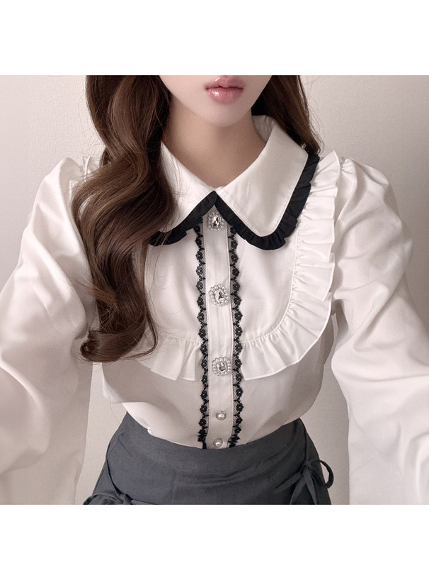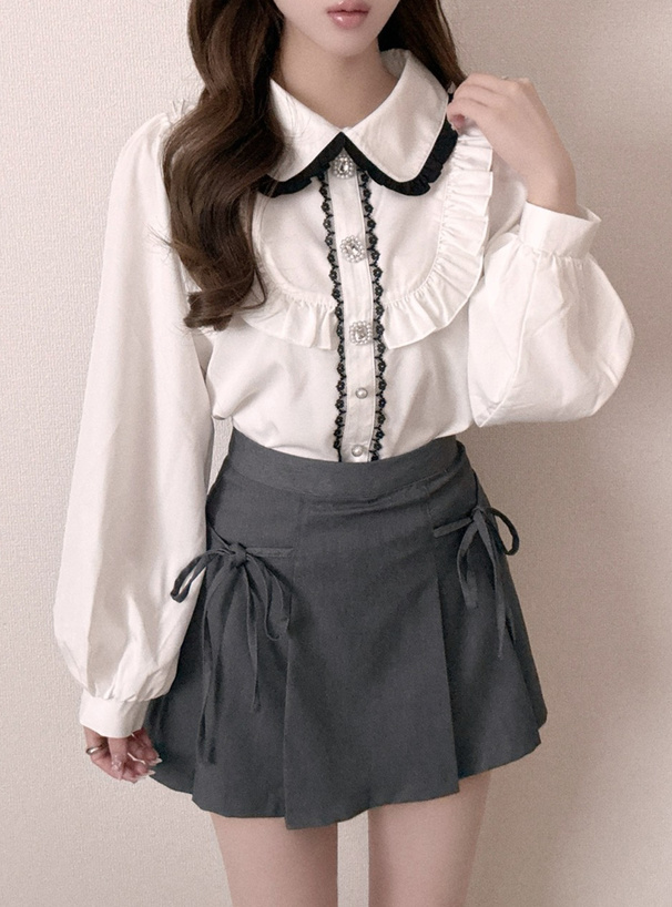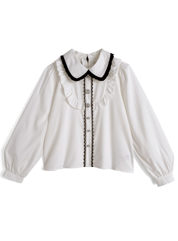丸襟やフリルヨークで甘さたっぷりな印象に仕上げたブラウス。