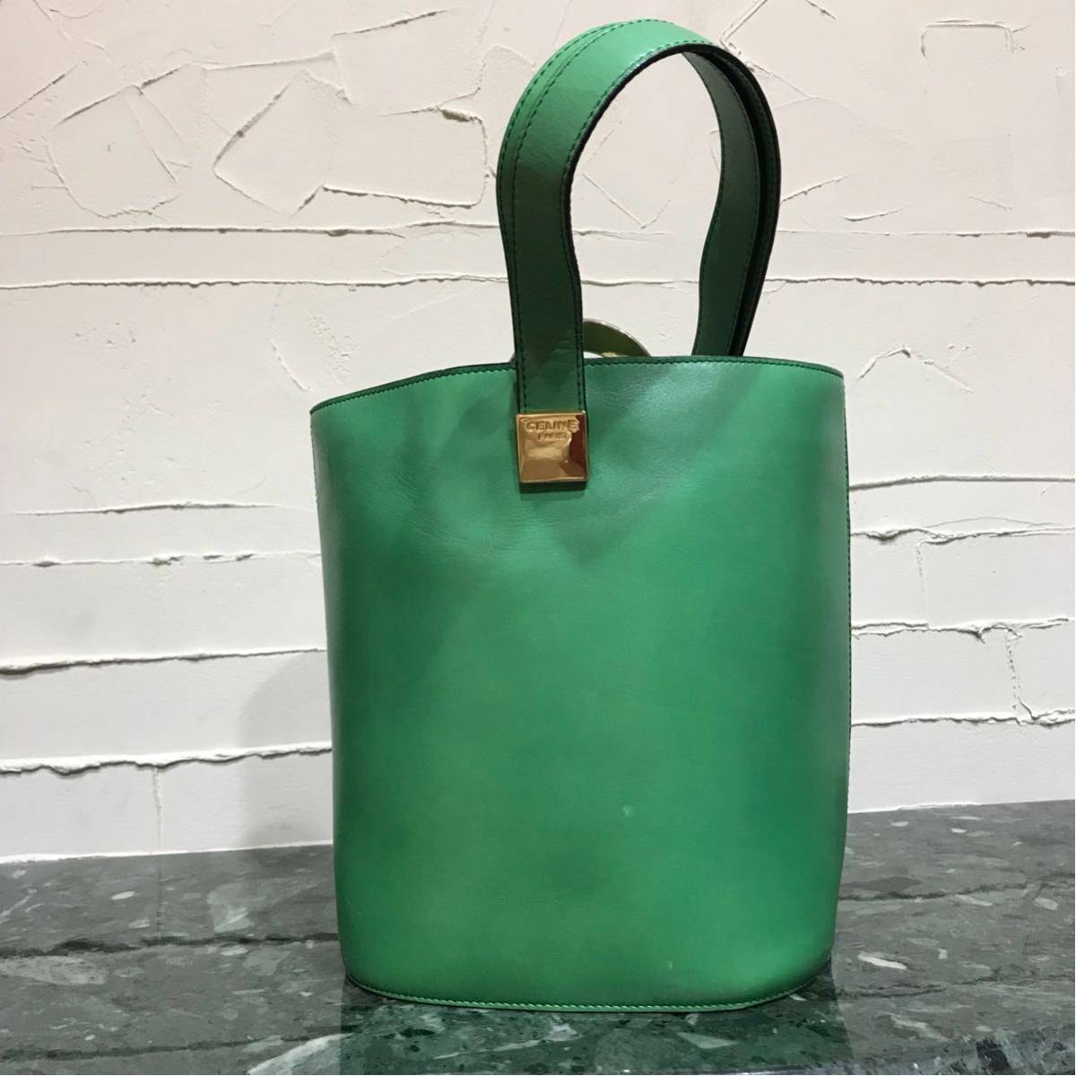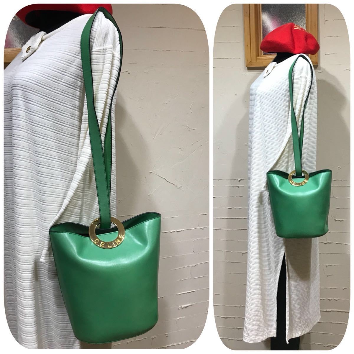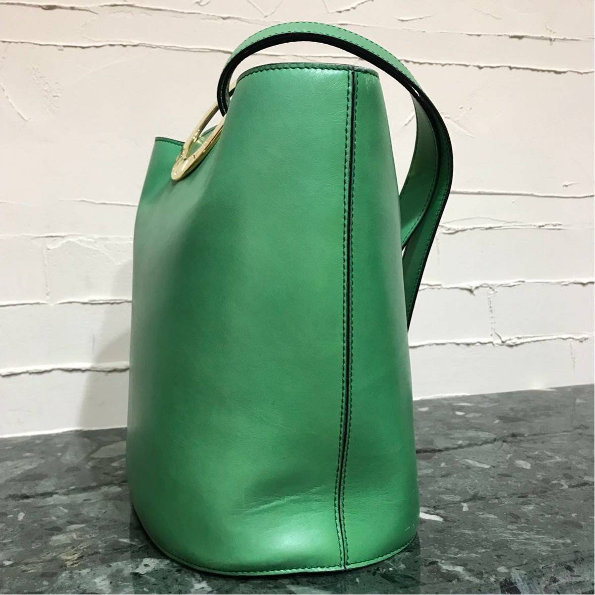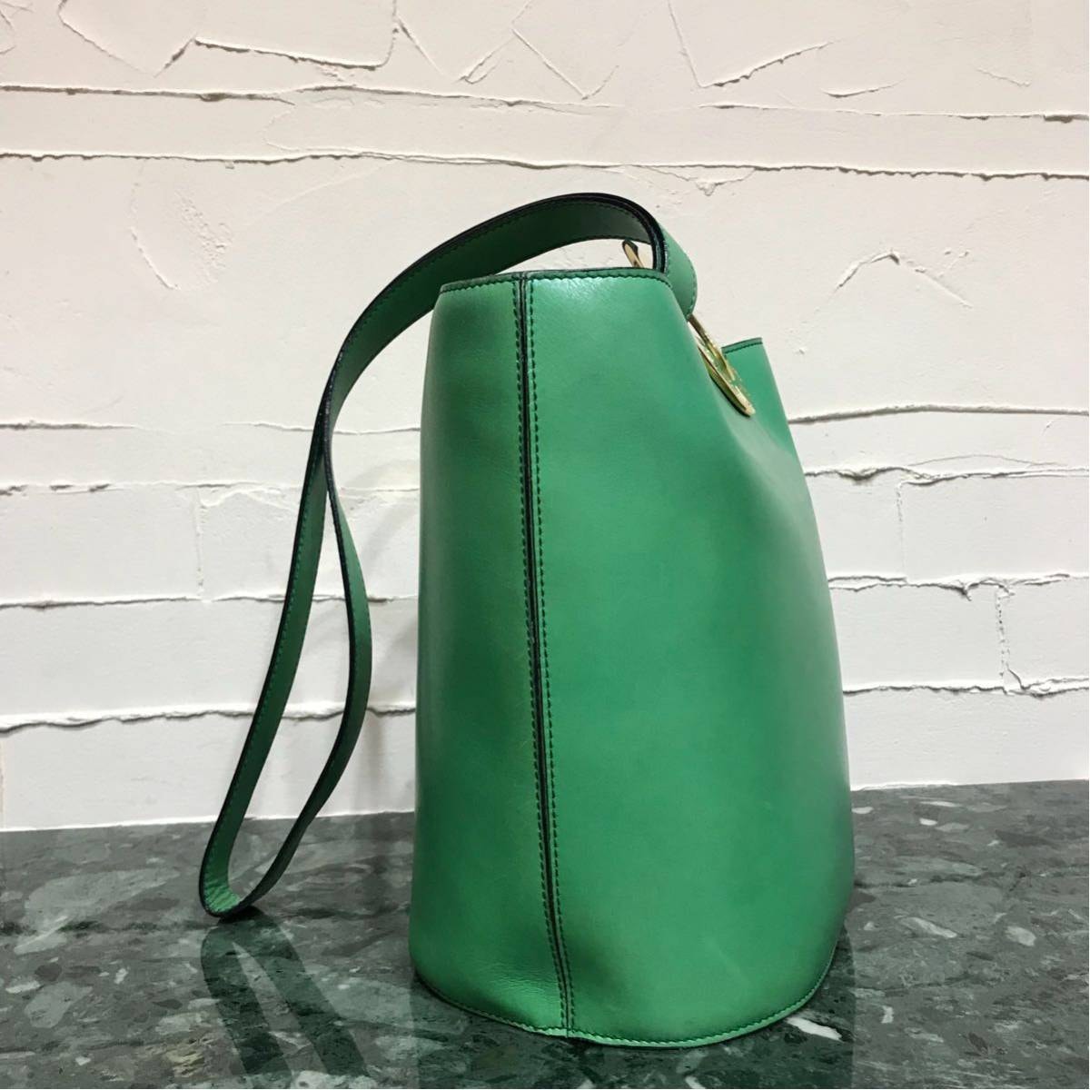 バケツ型のフォルムにゴールドのサークルロゴ金具が映えるエレガントなアイテムです。