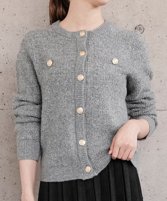 フロントには輝くゴールドボタンをあしらい、クラシカルな雰囲気と女性らしいきちんと感をプラス。