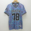 D■ミシカ/MISHKA 総柄プリント ゲームシャツ/Tシャツ【S】青系/MENS/20【中古】■