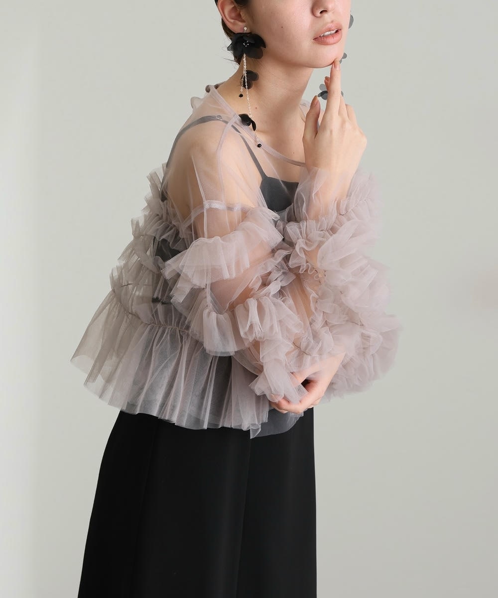軽やかなフリルを贅沢にあしらい、動くたびに表情が変わる華麗な1着。