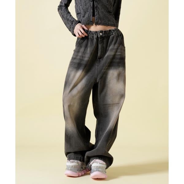 リアルなサンドウォッシュ加工がポイントのワイドデニム。