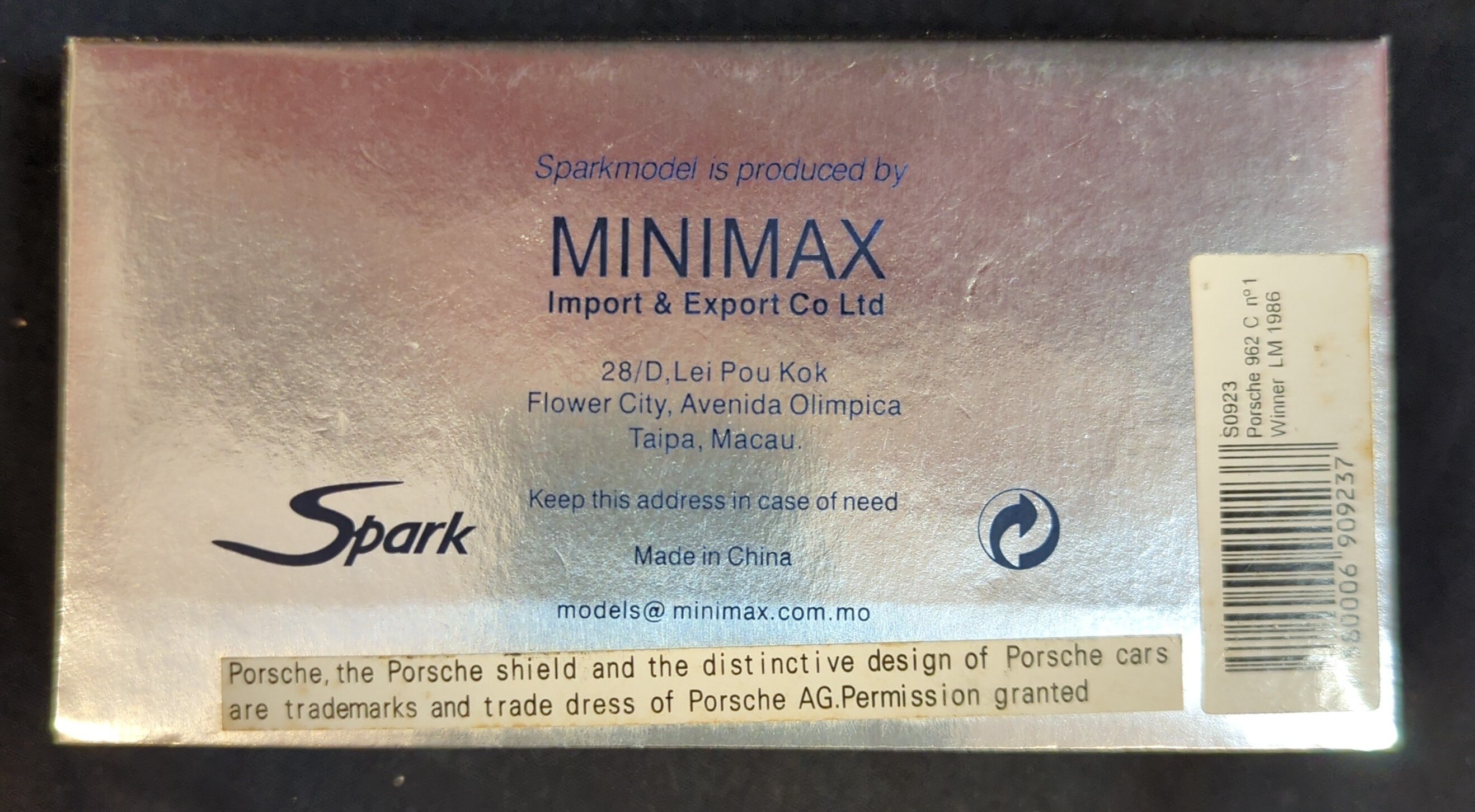 MINIMAX 1/43Spark model PORSCHE 962 ADAC n1 SUPERCUP 1988 SAM057