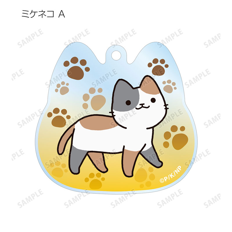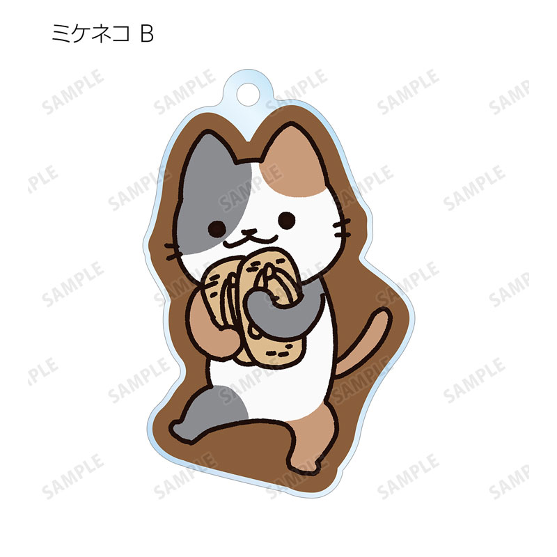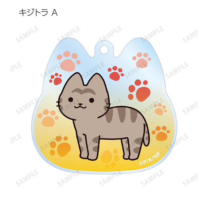 キジトラ、チャトラ、シロネコ、ミケネコのイラストをアクリルキーホルダーに仕上げました。