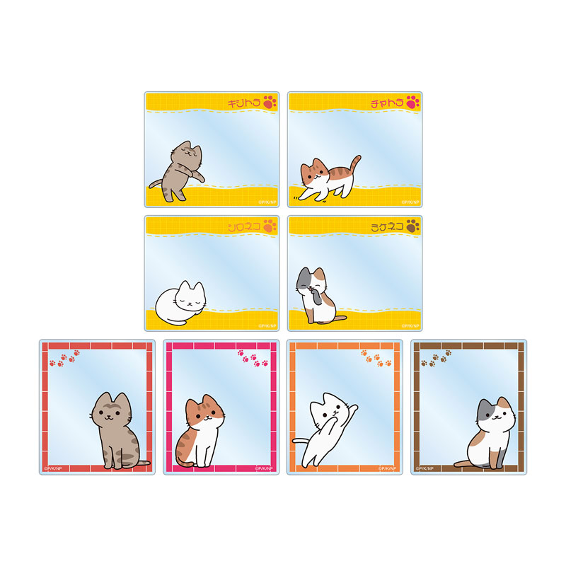キジトラ、チャトラ、シロネコ、ミケネコのイラストをアクリルカードに仕上げました。