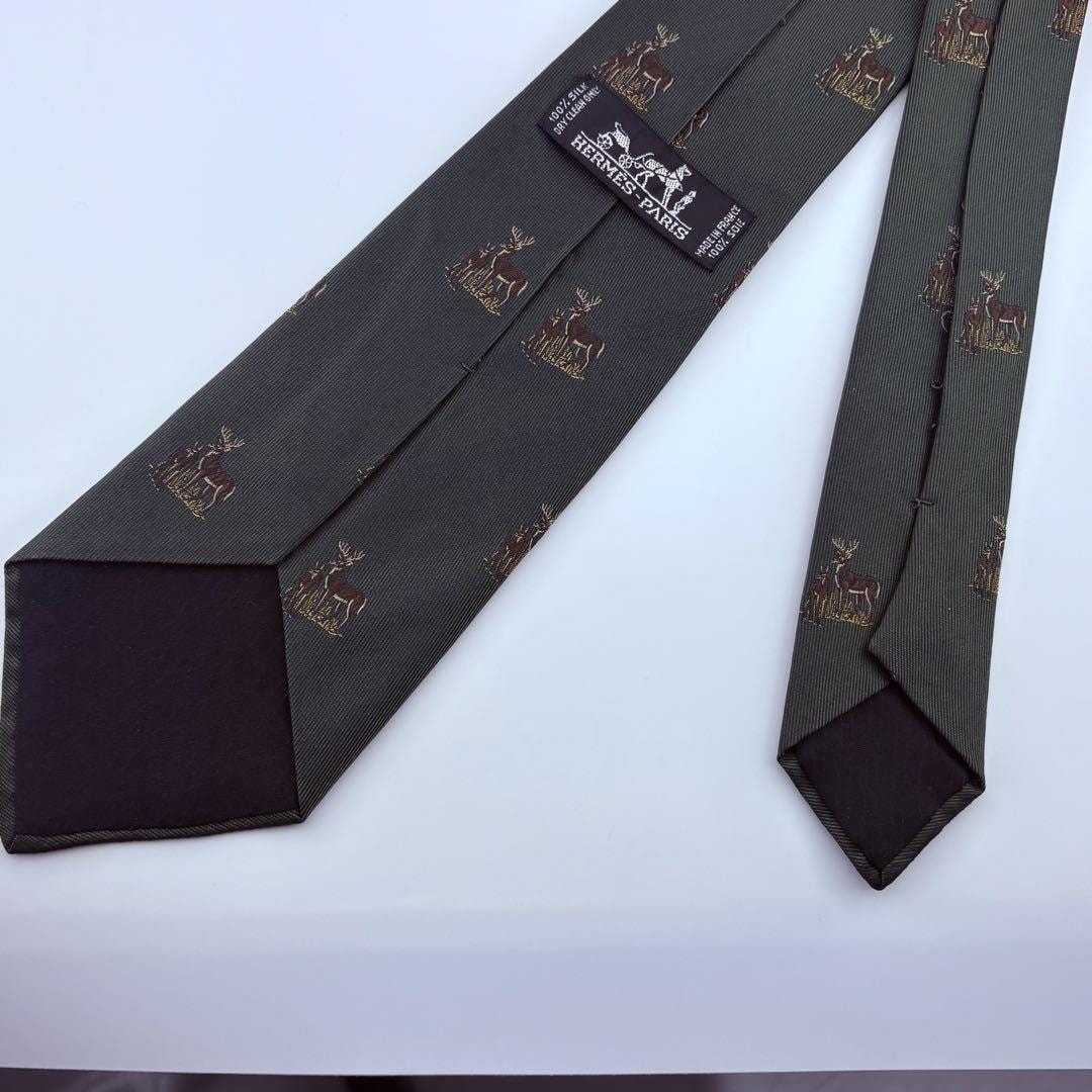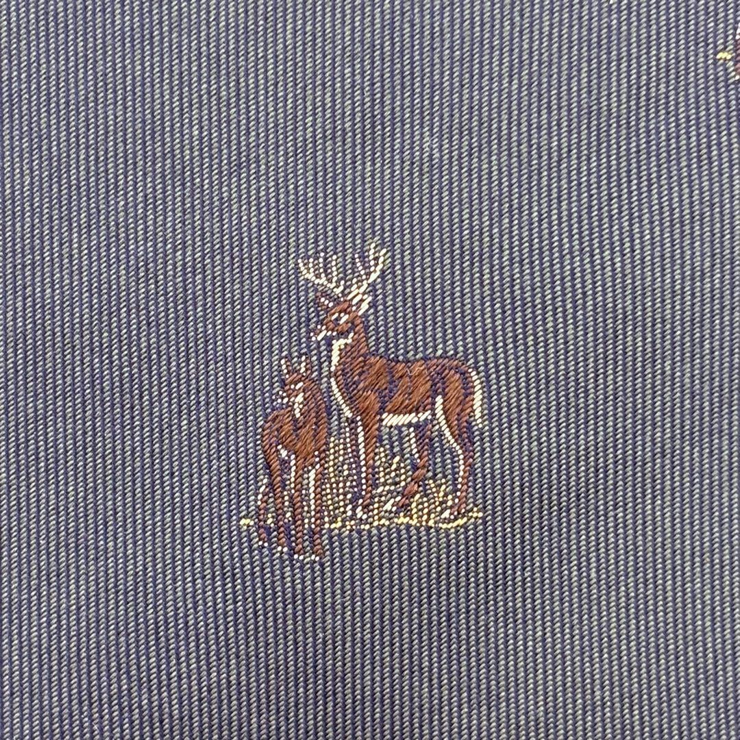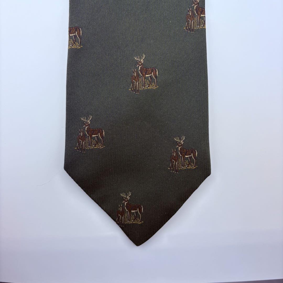 落ち着いたグリーンの地色に鹿(スタッグ)柄が織り込まれた、非常に上品で希少な一本です。スーツスタイルにさりげないアクセントを加えたい方におすすめです。