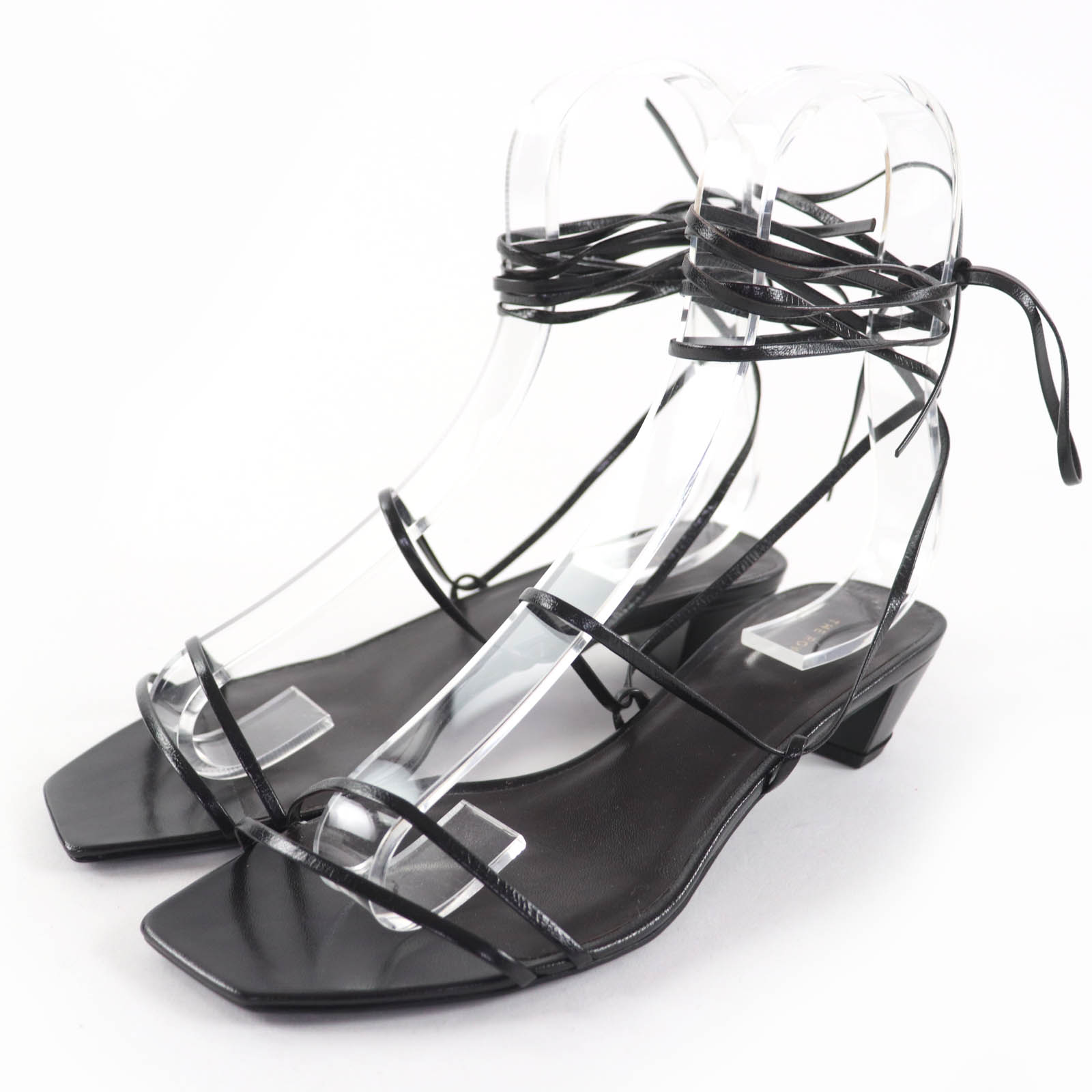 極美品□THE ROW ザロウ CITY FLIP FLOP レザー フリップフロップ トングサンダル ビーチサンダル ブラック 46 イタリア製 メンズ【中古】
