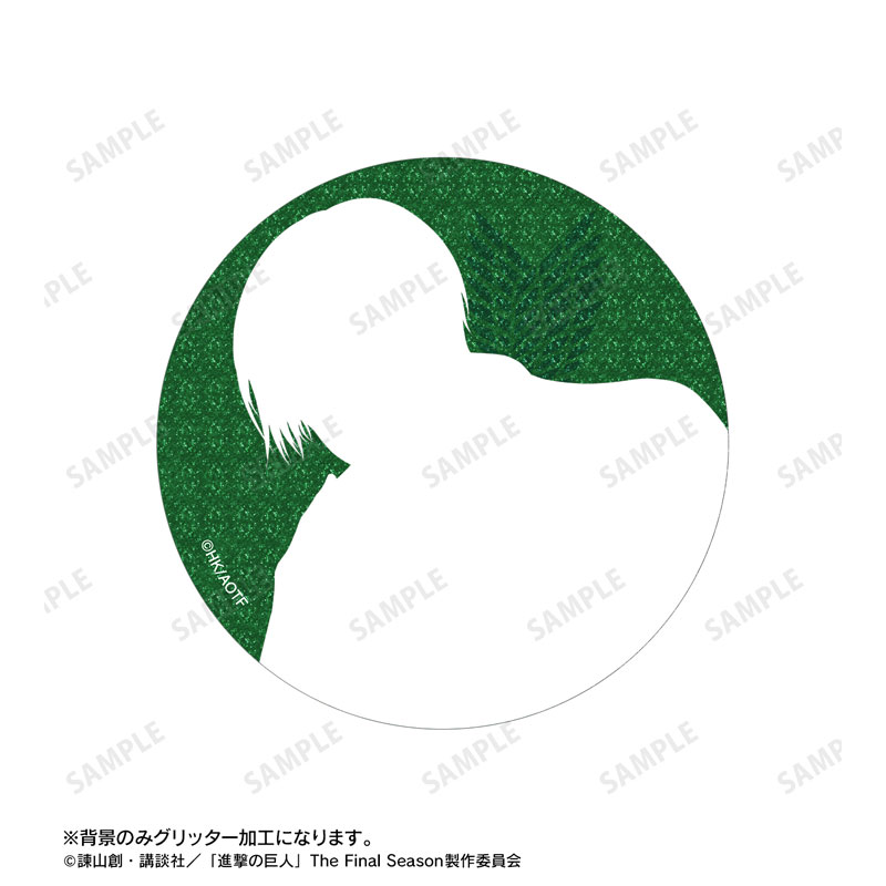 TVアニメ『進撃の巨人』より、76mmグリッター缶バッジの登場です。 カバンや小物につけたり、お部屋に並べて飾ったり、キャラクターとの日常をお楽しみください。