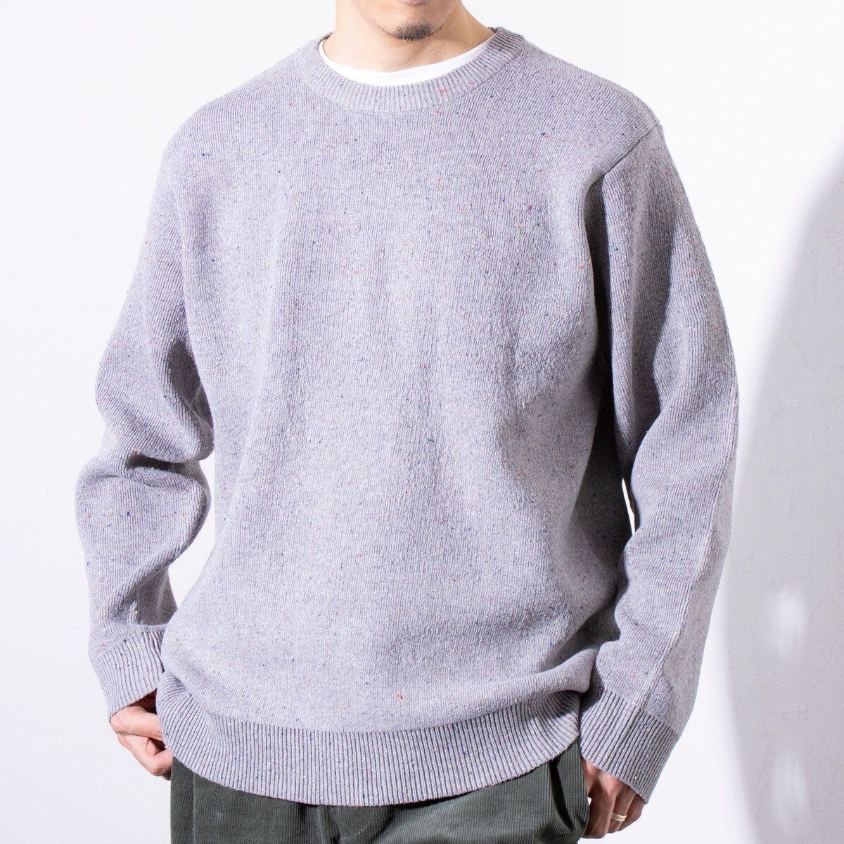 カラーネップが織り交ぜられたシンプルながらポップでアクセントの効いたニット
