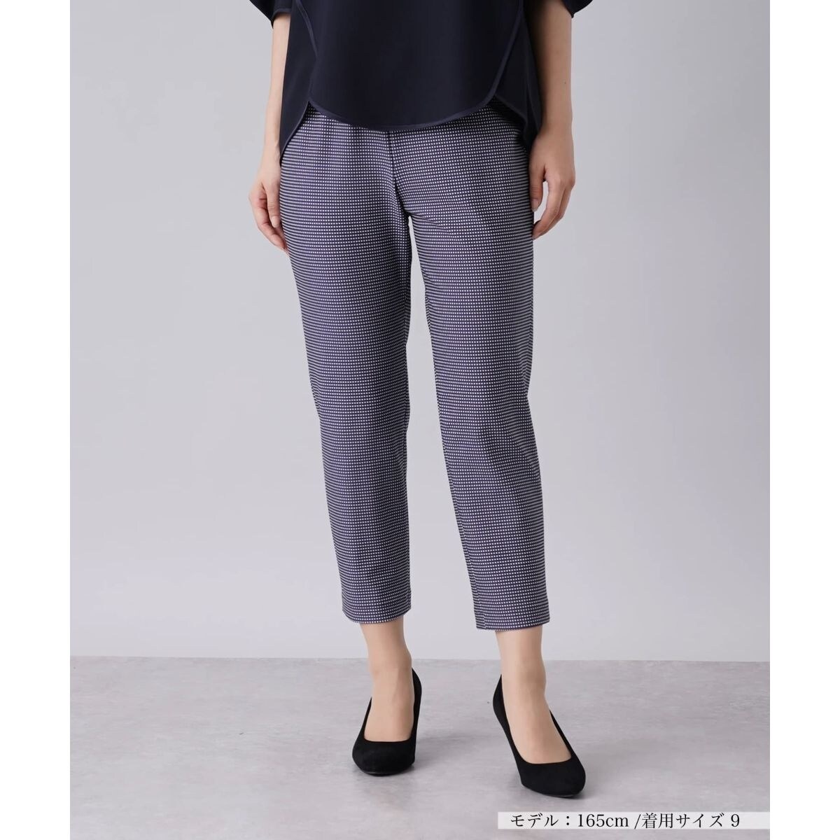 細やかなチェック柄がコーディネートのアクセントになってくれる、アンクル丈のイージーパンツ。裾に向かってすっきりと絞り込んだシルエットがレッグラインをスマートに引き立てます。伸縮性に優れたストレッチ素材を使用しているので穿き心地が良く、アクティブなシーンでも活躍間違いなし。ウエストは総ゴム仕様で心地よいフィット感をもたせました。