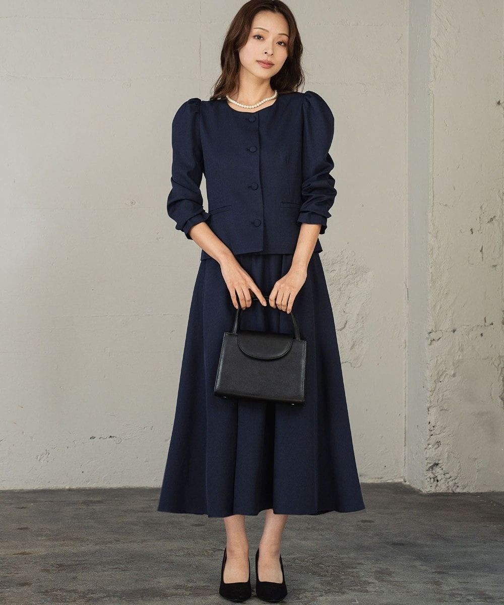フロリア ノーカラーペプラムジャケット・コクーンワンピース セットアップスーツ フォーマルセレモニー【ストレッチ/洗える】