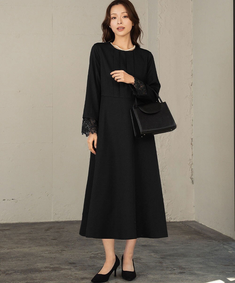 ポリエステル素材 / 無地 / レース / 長袖 / LL・13号以上あり / S・7号以下あり / Aライン(シルエット) / フレアスカート / ミモレ・クロップド・半端丈 / セレモニー・入学式・卒業式 / ブラックフォーマル(礼装・喪服)