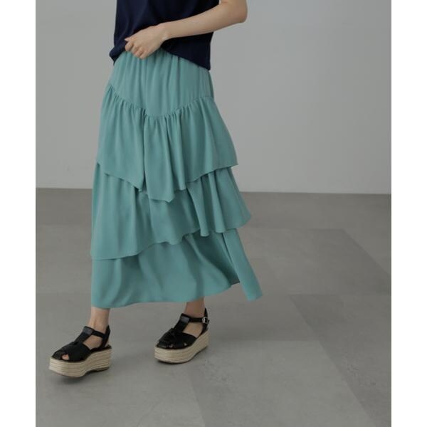 トレンドスタイルが叶うティアードロングスカート。ワッシャー加工をいれた、ストンと落ち感のある軽い素材を使用。ランダムなティアードデザインが特徴で、動くたびにフレアが広がるフェミニンなシルエットです。ウエストの後ろはゴム仕様ではき心地く仕上げています。冬らしいボリュームニットやカジュアルなスウェット合わせで抜け感をだせる一枚です。※こちらの商品はXSサイズの展開がございます。◆サイズ目安◆XSサイズ→身長150cm-152cm ウエスト57cm-59cm※モデルの着用画像の場合、光の当たり具合により、実際の色味と異なって見えることがございます。色味は、商品単体の画像をご参照ください。