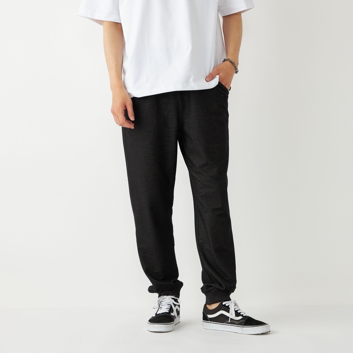 本体(ポリエステル45%、コットン35%、ポリウレタン20%)リブ(ポリエステル67%、コットン31%、ポリウレタン2%)
