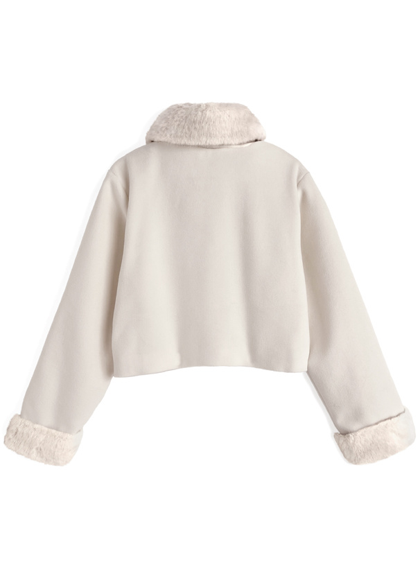 しっとりとした柔らかな肌触りのフェイクウール生地を使ったジャケット。