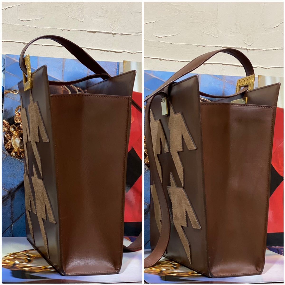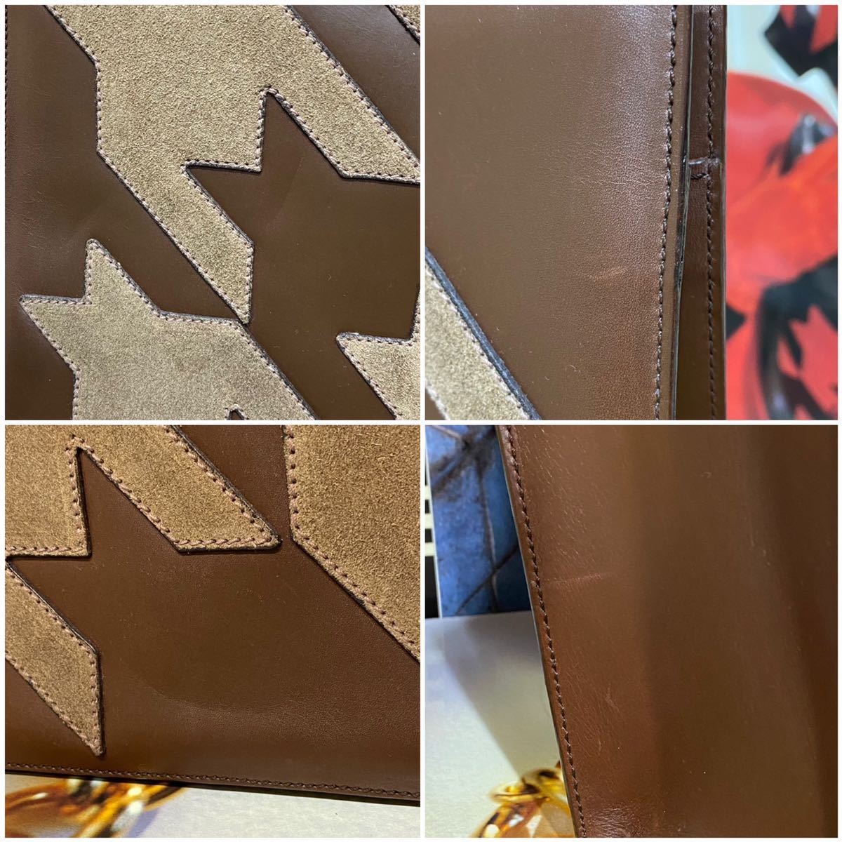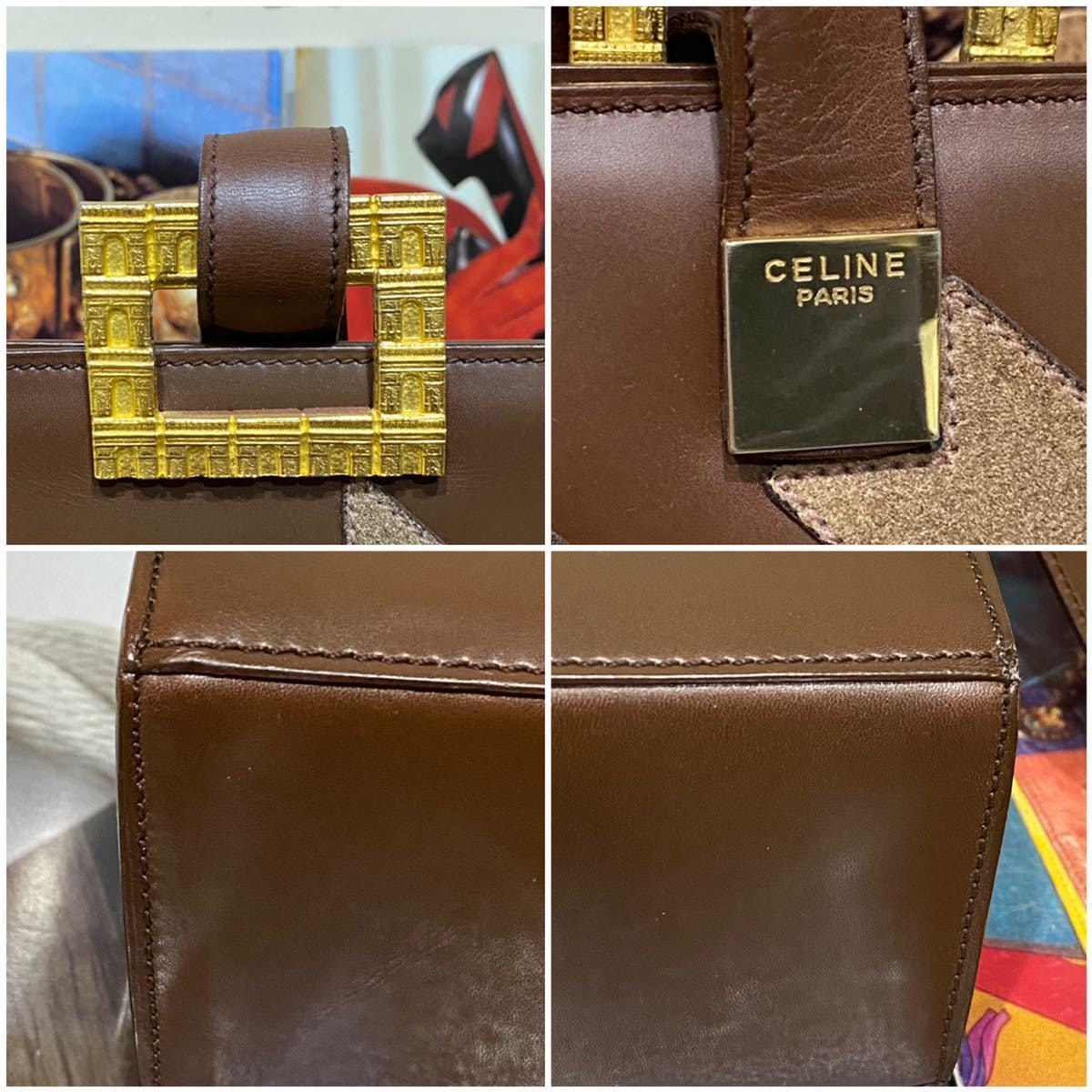 珍しい千鳥格子柄に象られたスエードレザーが正面と背面にステッチされ、ゴージャスなゴールドの凱旋門金具が装飾されたヴィンテージセリーヌらしいラグジュアリーかつ個性溢れるアイテムです。