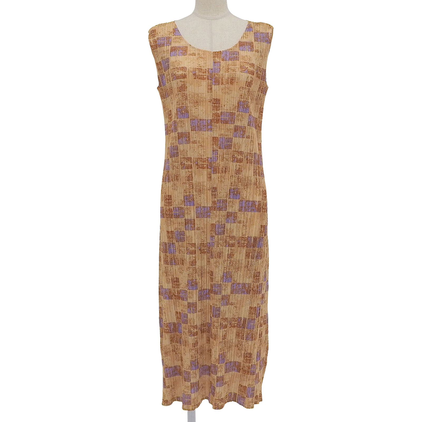 極美品☆PLEATS PLEASE プリーツプリーズ イッセイミヤケ ロング丈 ノースリーブ ワンピース オレンジ系 5 日本製 正規品 レディース【中古】