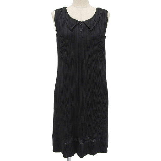 ☆極美品☆ PLEATS PLEASE プリーツプリーズ イッセイミヤケ 膝丈ワンピース vネック ドレス ブラック 4サイズ