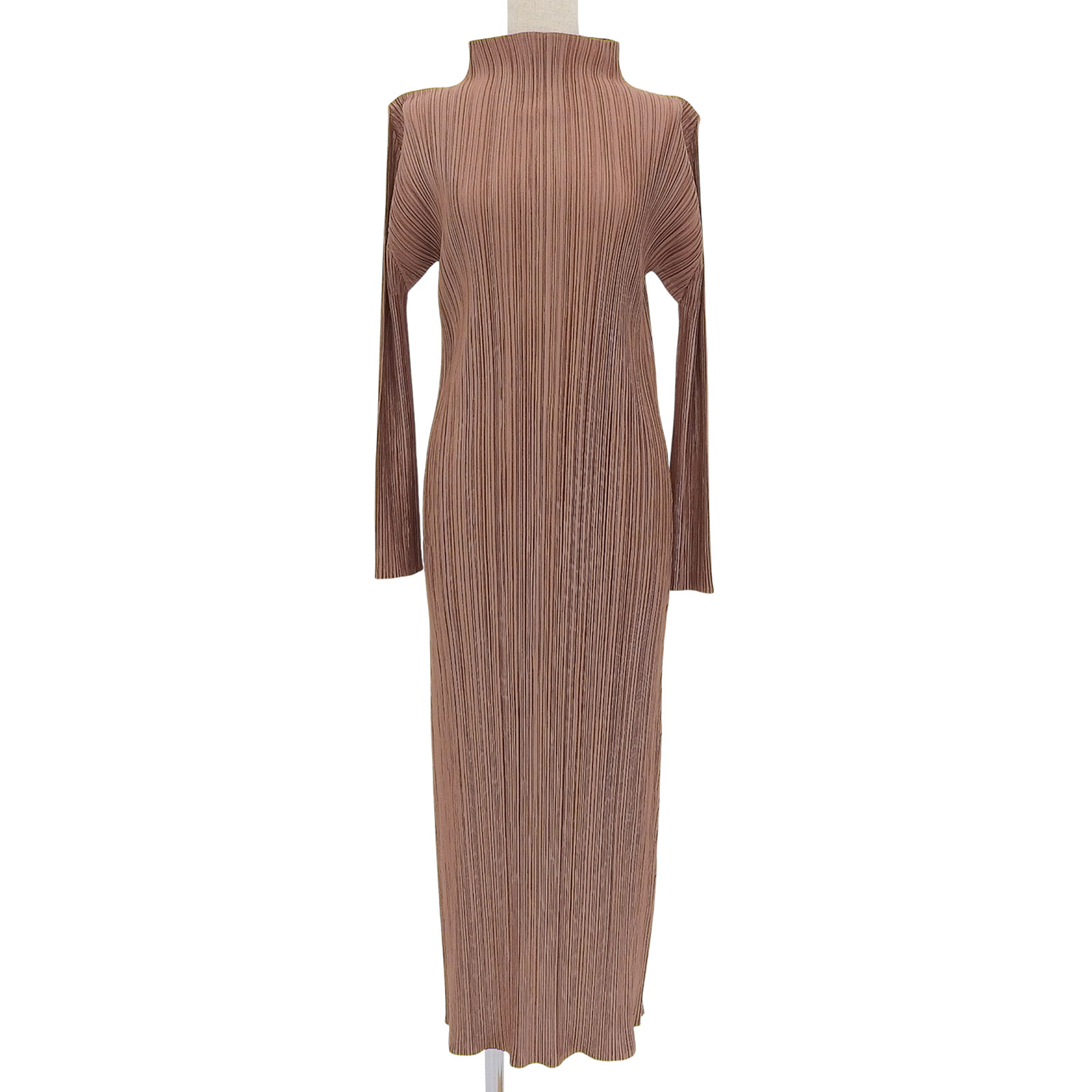 極美品☆PLEATS PLEASE プリーツプリーズ イッセイミヤケ ロング丈 ノースリーブ ワンピース オレンジ系 5 日本製 正規品 レディース【中古】