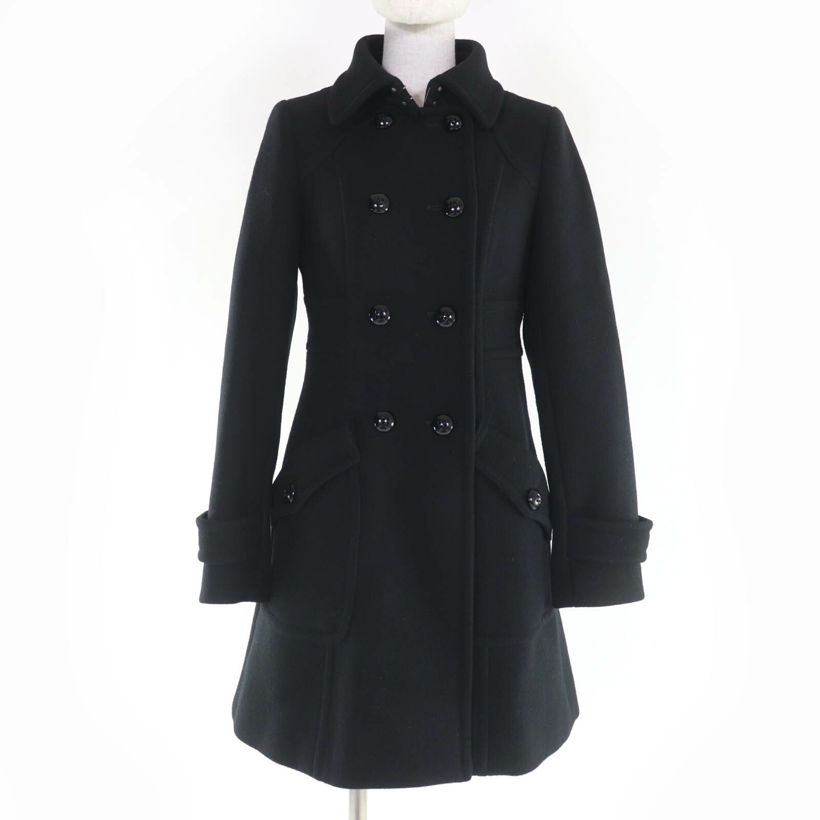 美品☆BURBERRY BLUE LABEL バーバリーブルーレーベル ウール アンゴラ ロゴボタン・ベルト付 コート ブラック 38 正規品 レディース【中古】