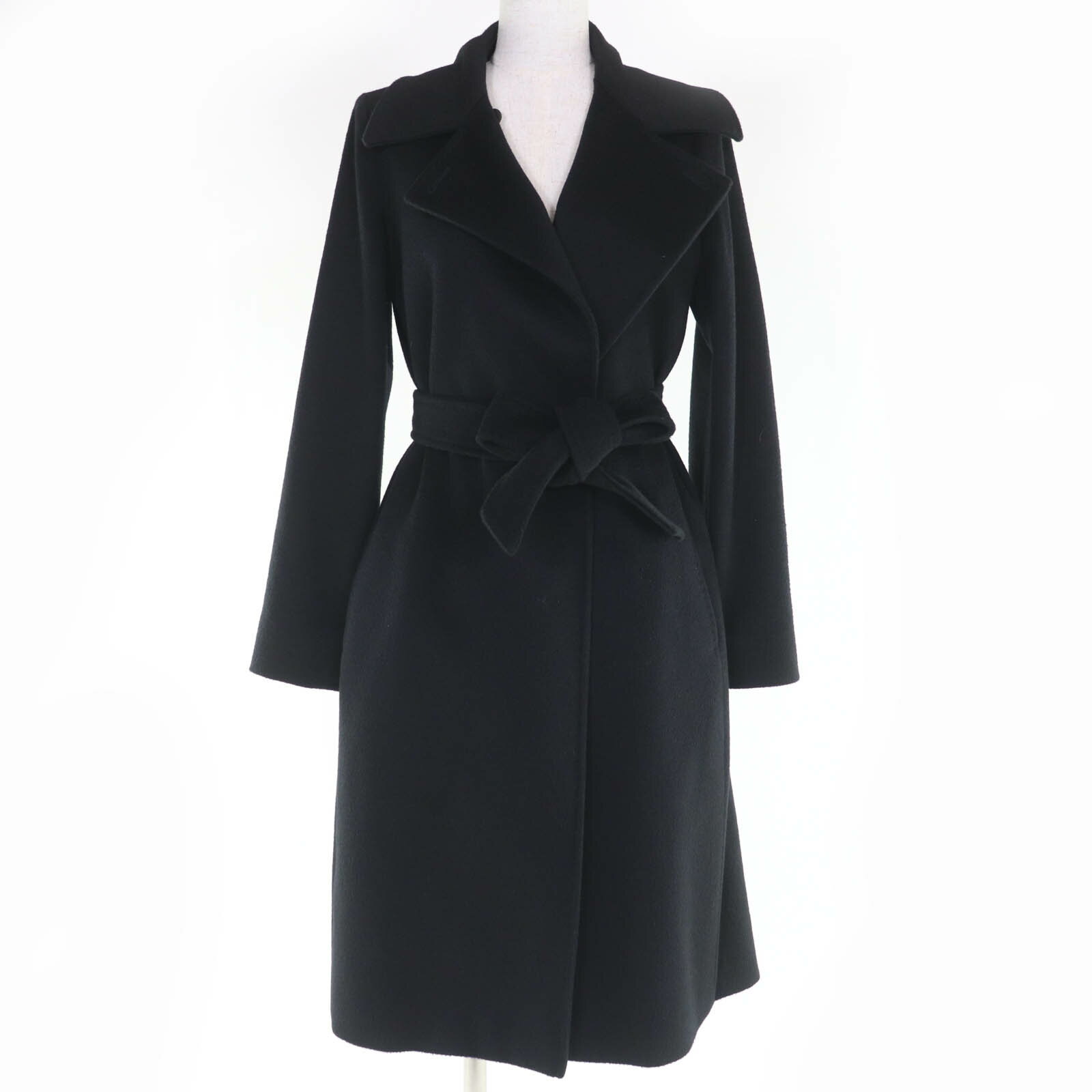 極美品◇MaxMara STUDIO マックスマーラ ステュディオ ベルト付き ラミー100% ひざ丈 コート ブラック 40 正規品 レディース【中古】