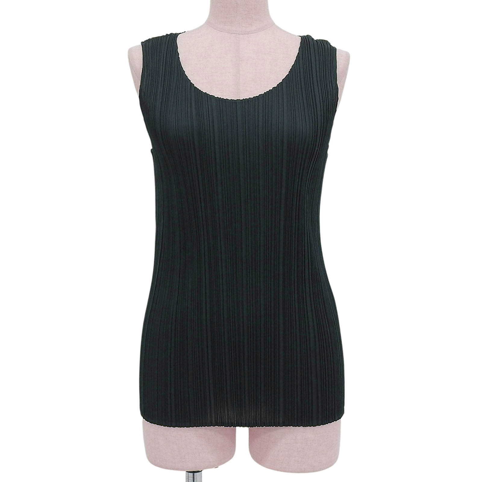 極美品▲PLEATS PLEASE プリーツプリーズ イッセイミヤケ PP05-JK001 ラウンドネック ノースリーブ トップス ブラック 4 日本製 正規品 レディース【中古】