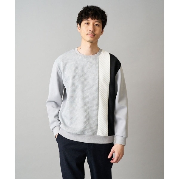 ◆前身頃に凹凸感のあるジャカード素材を取り入れた切替えデザインカットソー◆