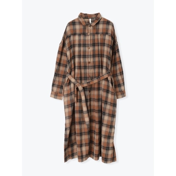 播州織 チェック柄 ネル長袖シャツワンピース