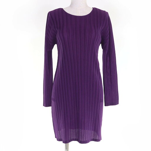 極美品▲PLEATS PLEASE プリーツプリーズ イッセイミヤケ PP14-JH675 メッシュ ノースリーブ ワンピース パープル 3 日本製 正規品 レディース【中古】