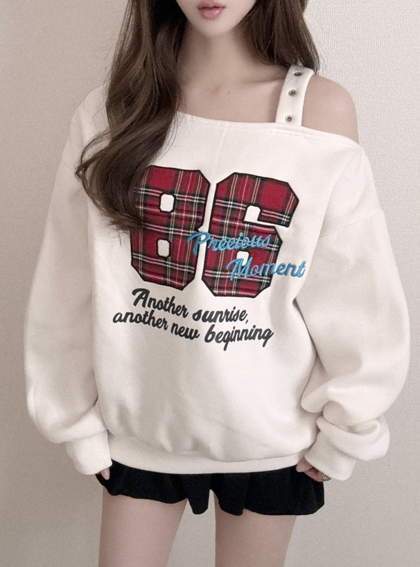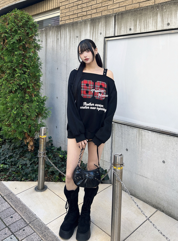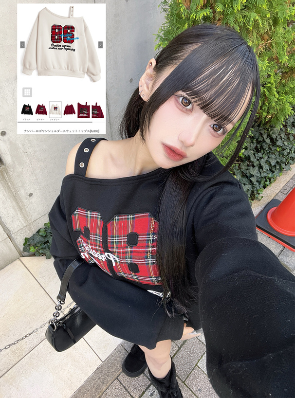 チェック柄や迷彩柄を取り入れた大胆なナンバーロゴが目を惹くトップス。