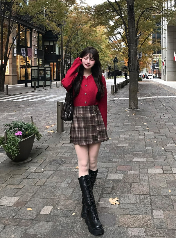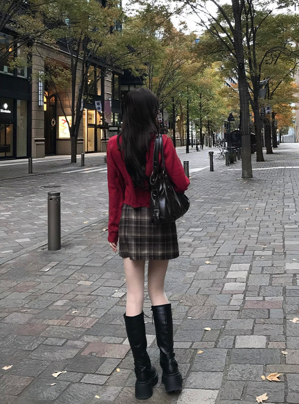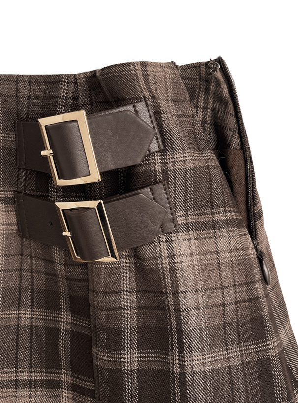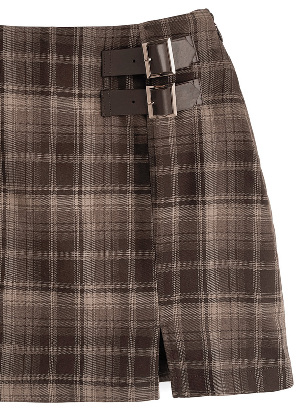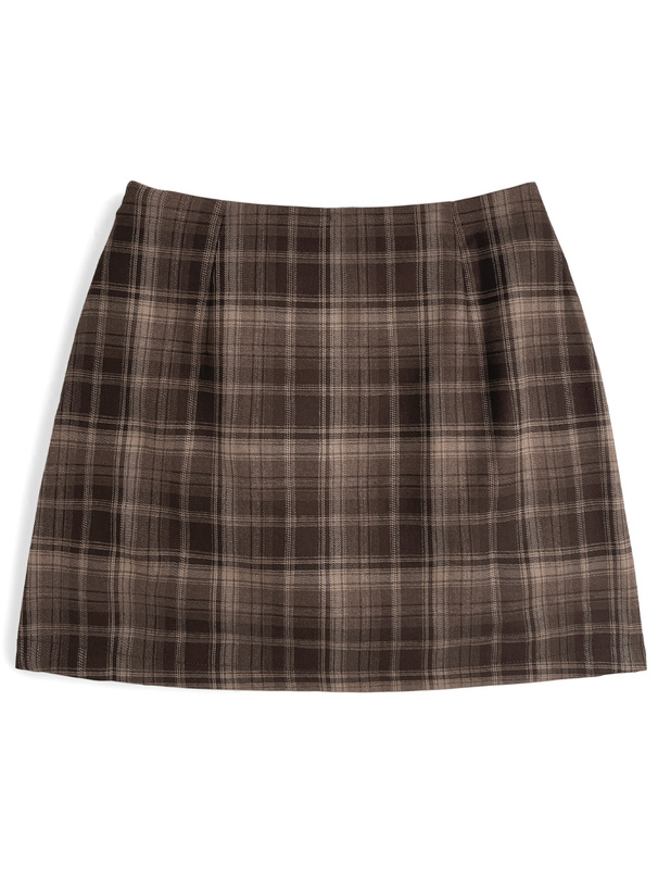 シックなチェック柄生地が落ち着いた印象を与えるミニスカート。