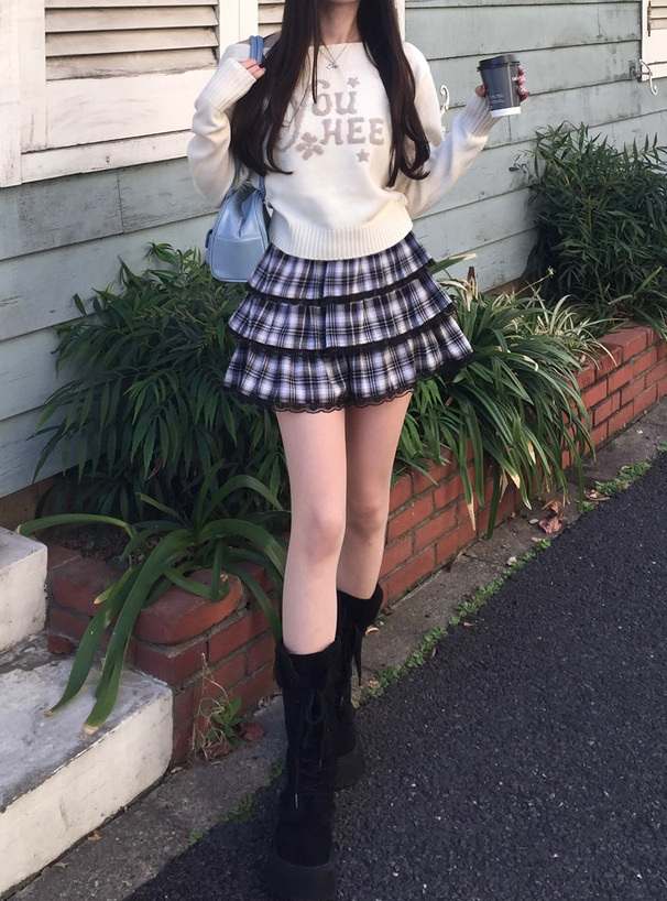 クラシカルなチェック柄生地で仕立てた、レトロガーリーなミニスカート。