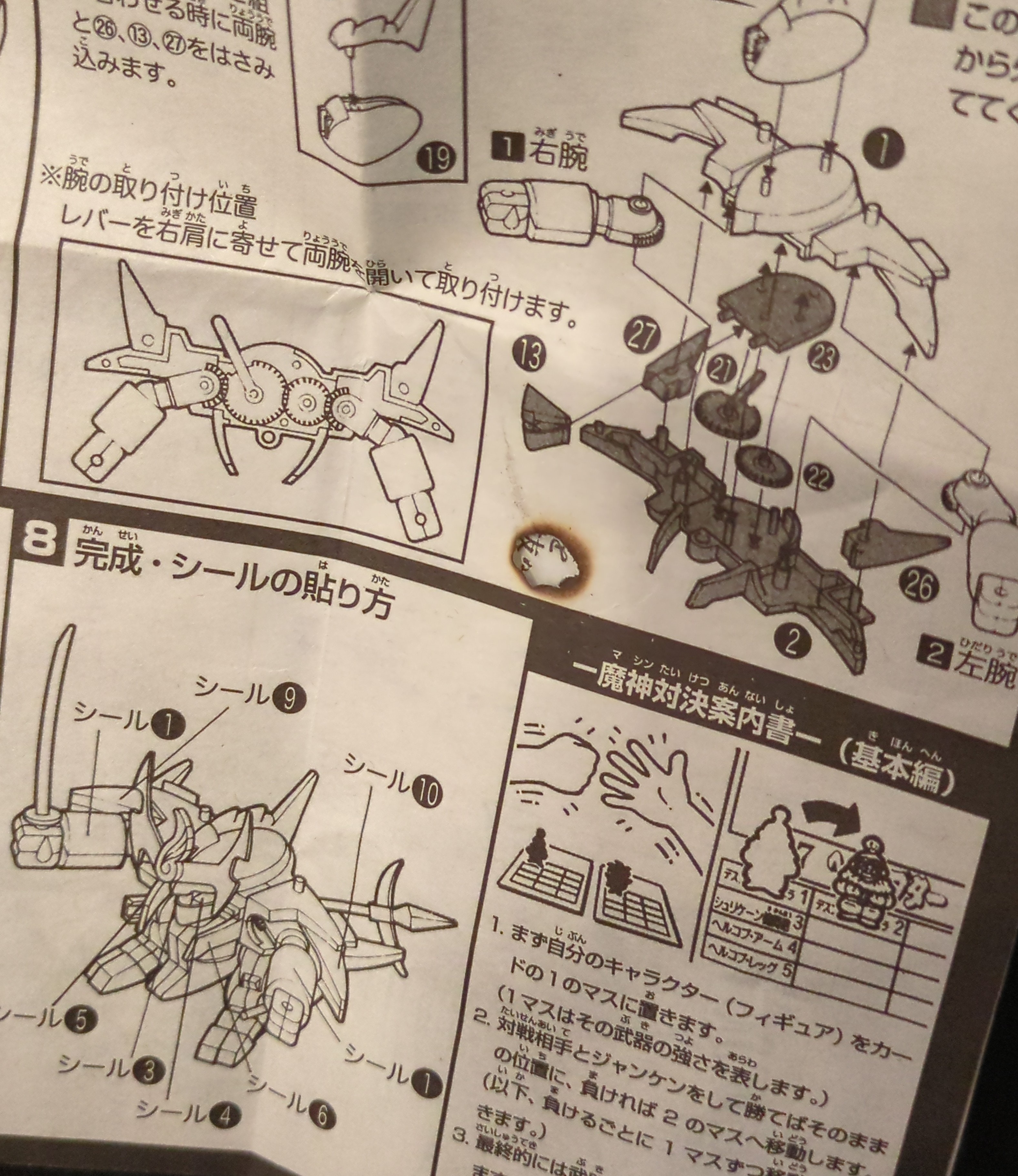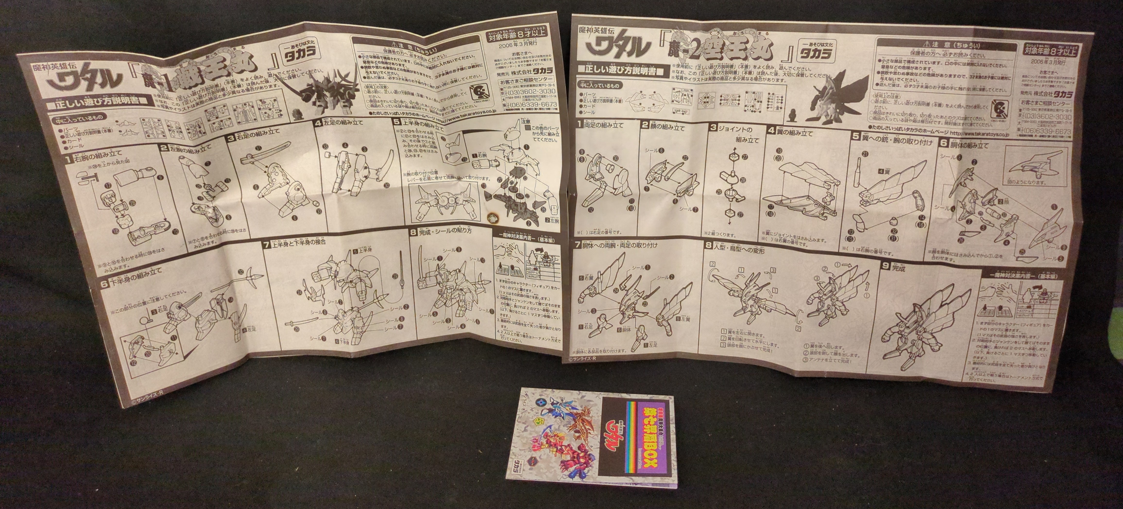商品状態: 開封使用 箱イタミ大 戦王丸・空王丸組み済・ヤケ・イタミ・シールハガレ・シール欠・付属品画像のものが全て・輸送中に破損の可能性有 その他未組立 紙類イタミ大 戦王丸説明書焦げ跡有・シール経年劣化