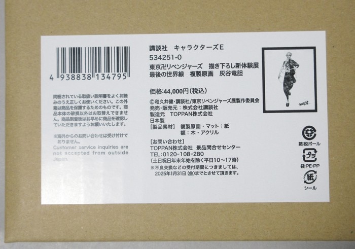 | 東京卍リベンジャーズ 描き下ろし新体験展 最後の世界線 複製原画 灰谷竜胆 額サイズ470×395 箱付 定価4万円+税 |