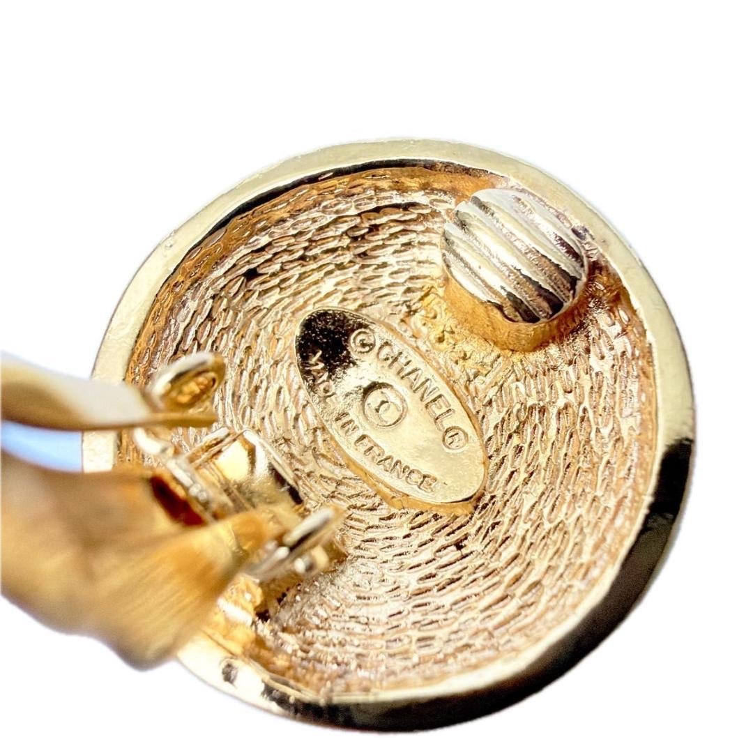 CHANELのココマークとマトラッセデザインが特徴的なラウンドイヤリング。