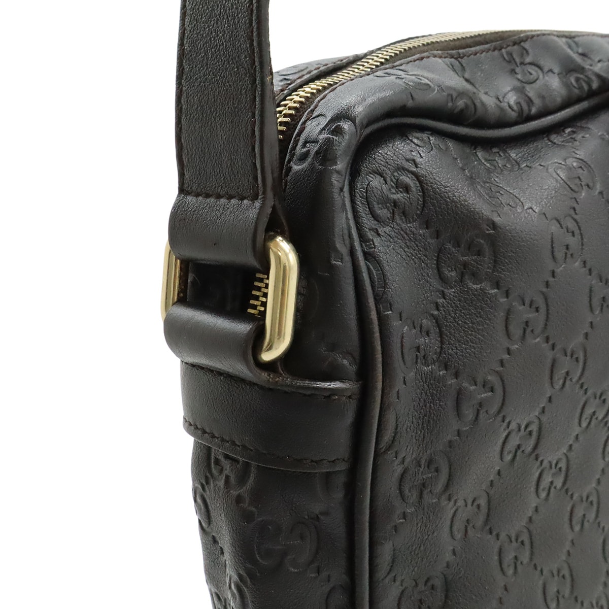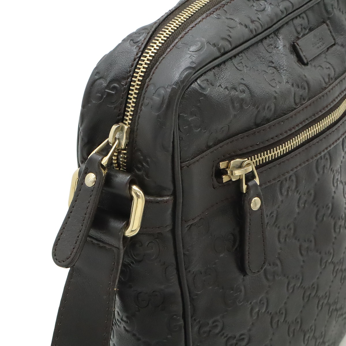 # GUCCI グッチ グッチシマ ショルダーバッグ 斜め掛け レザー ダークブラウン 茶 ゴールド金具 201448
