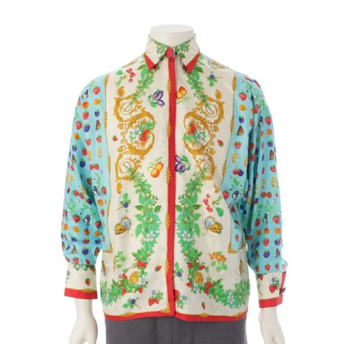 ジャンニ・ヴェルサーチェ 1995コレクション シルク バタフライ フルーツ 総柄 長袖シャツ トップス マルチカラー【中古】