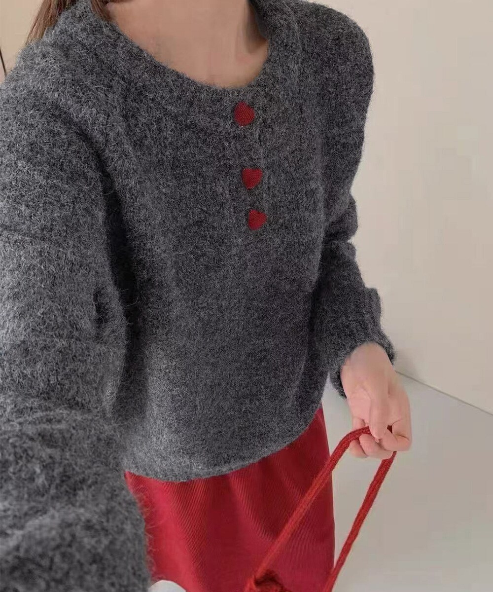 胸元には開閉できる赤いハートボタンをあしらい、ほんのりガーリーなアクセントに。