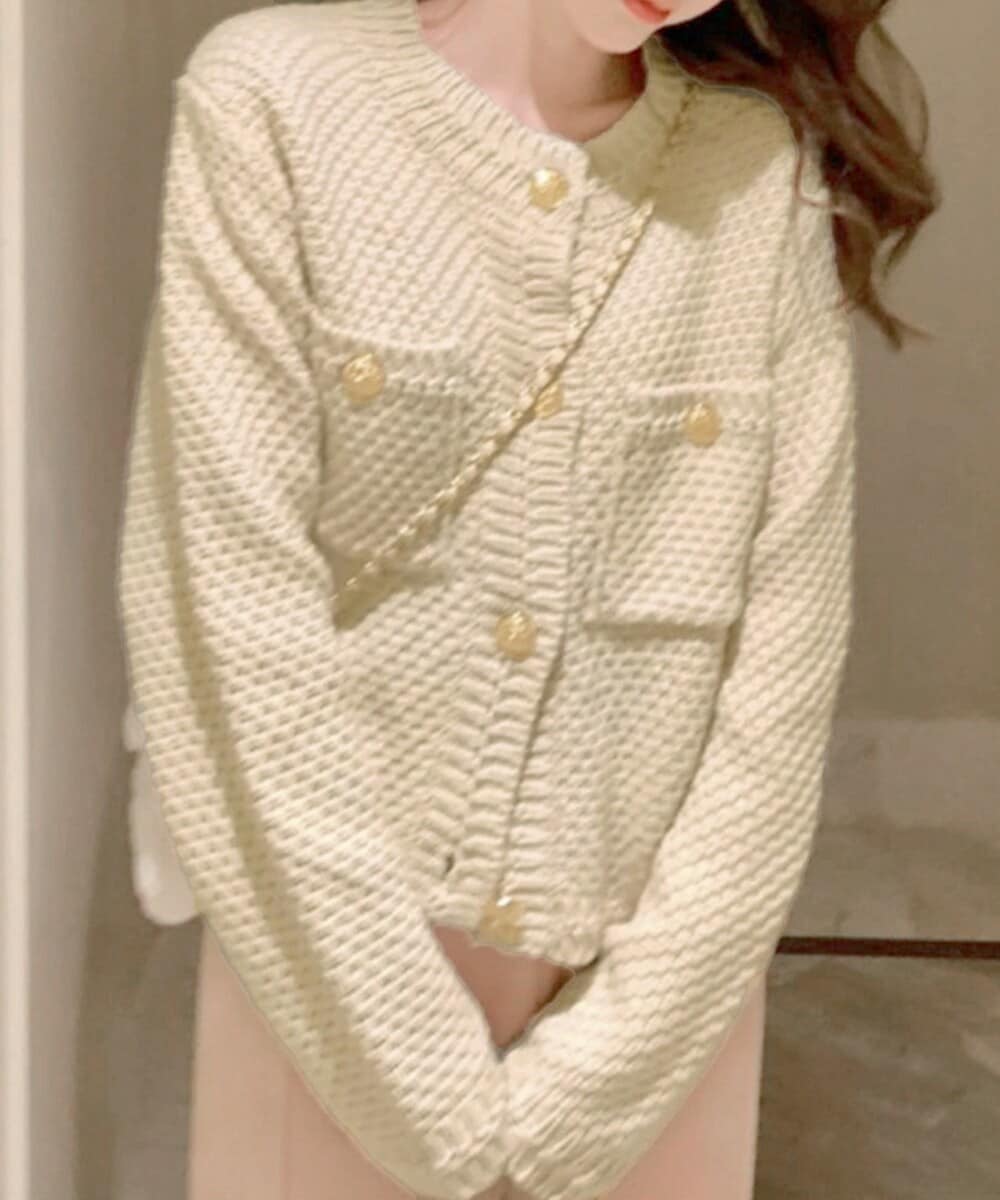 レディムードとトラッドを程よく掛け合わせたニットカーディガン。