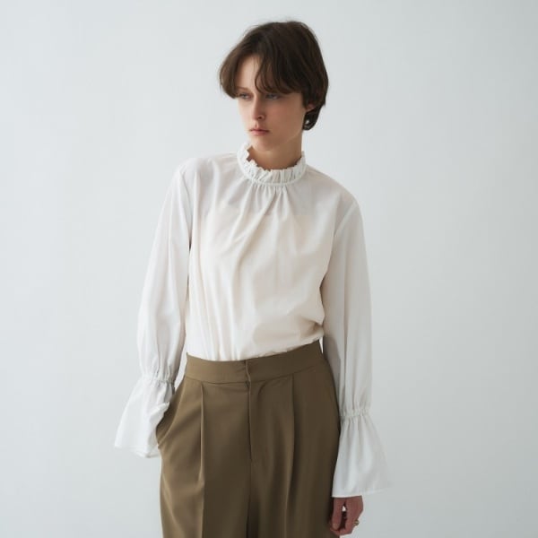 ・ブラウスの美しい立体的なフォルムを保つ、ハリとコシのあるさらりとした生地を使用。