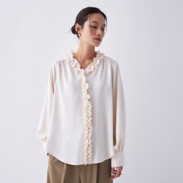 ・フロントの立体的なフリルデザインが華やかな印象のブラウス。