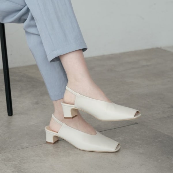 オープントゥやスリングバックのディテールが、足元を軽やかに演出します。