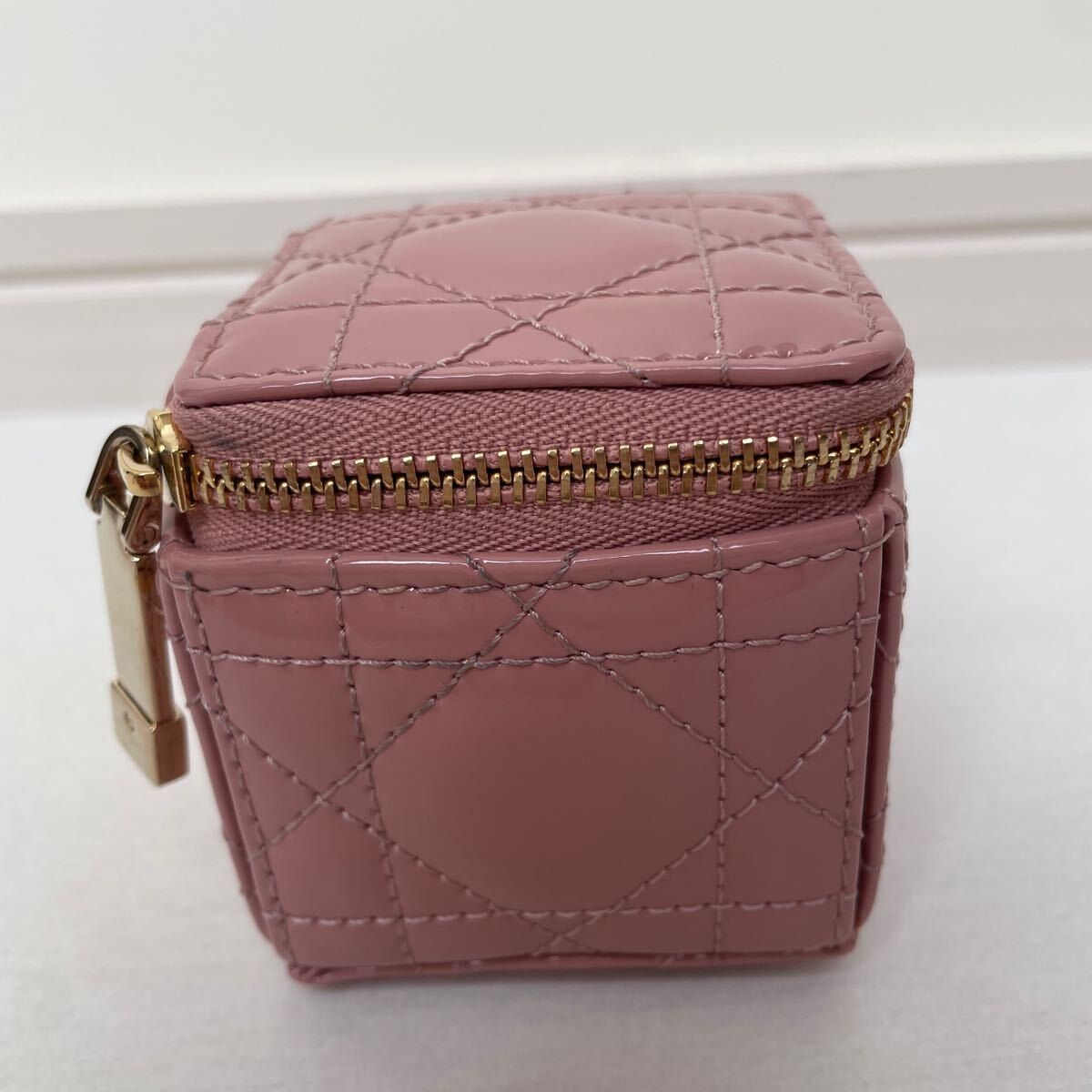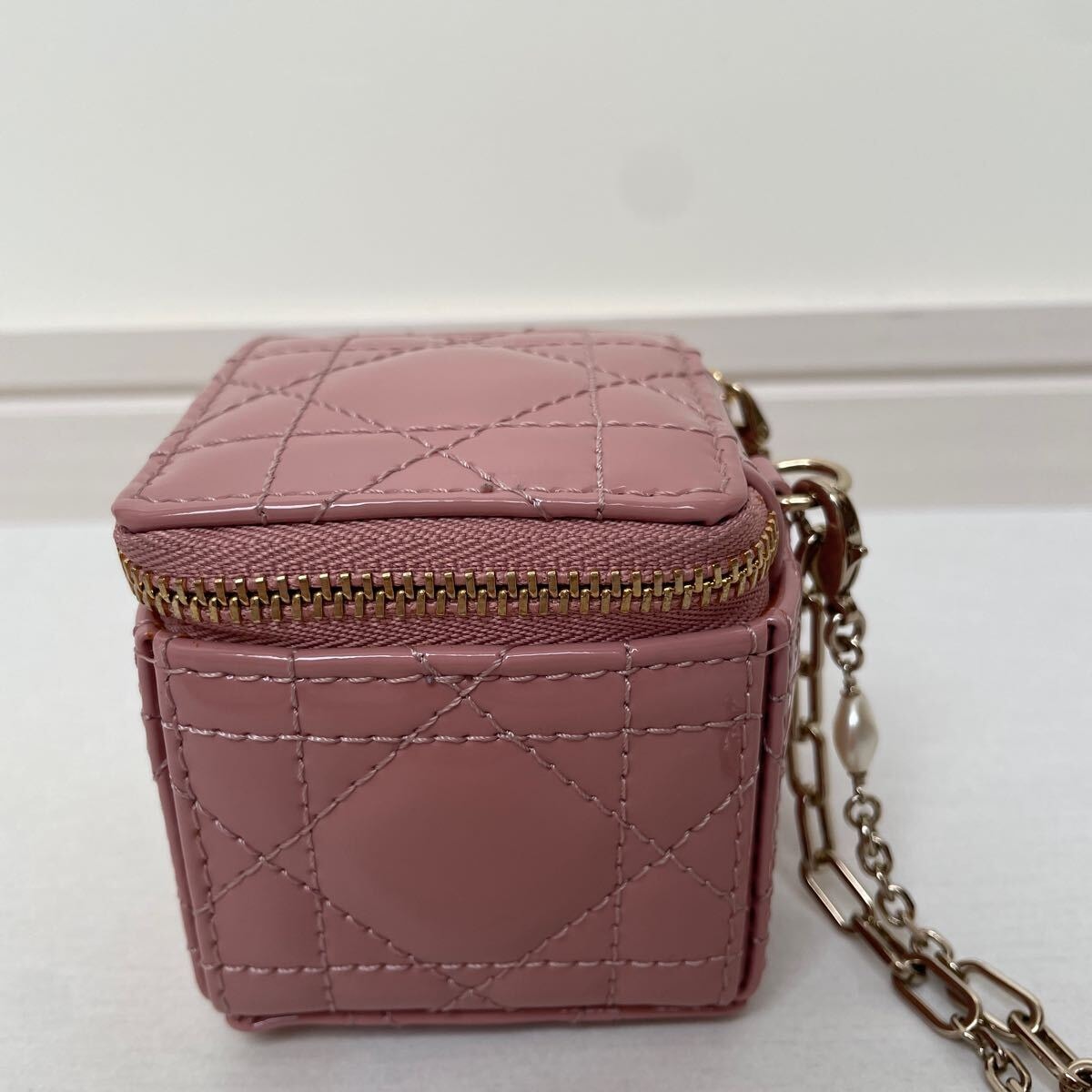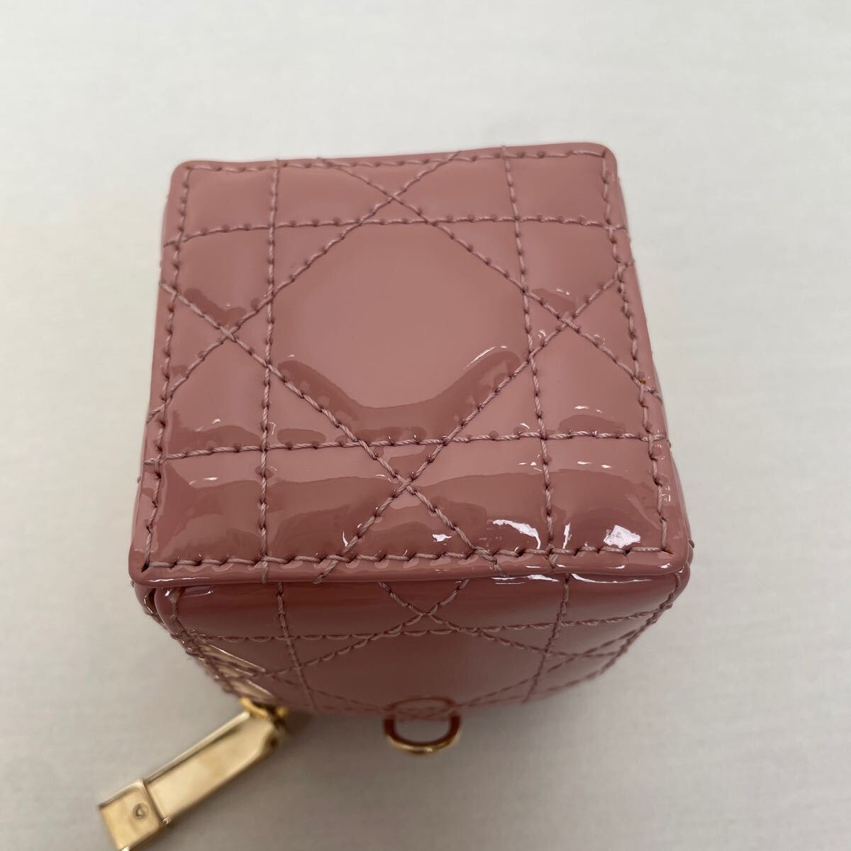 美品【ディオール】レア 希少 ディオール Lady Dior チェーン キューブ マイクロポーチ パティントカーフスキン カナージュ ピンク ダスティピンク LADY DIOR レディディオール DIOR Dior クリスチャンディオール Christian Dior コインケース 小銭入れ ポーチ 小物入れ